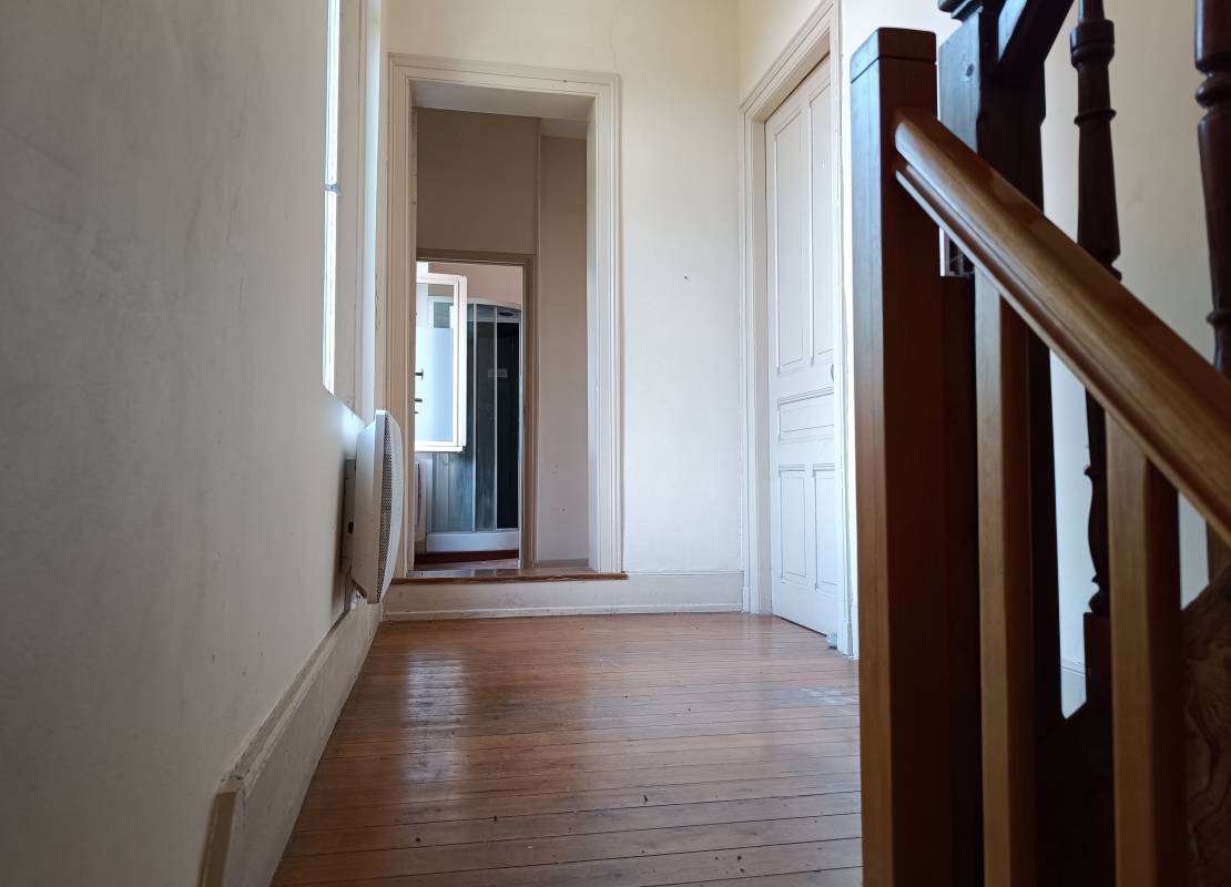 Elle présente trois niveaux, avec au RDC un salon, une salle à manger une cuisine fermée et un WC. Aux étages, trois chambres sont accessibles et une salle d’eau.