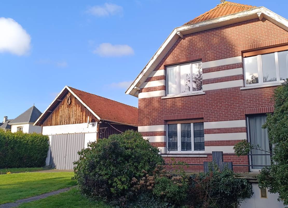 Descriptif: A 10 minutes d'Abbeville et proche de l'entrée de l'autoroute A16, une maison de 115 m² sur un terrain de plus de 6600 m², accompagné d'un grand bâtiment, et de 4 box à chevaux.