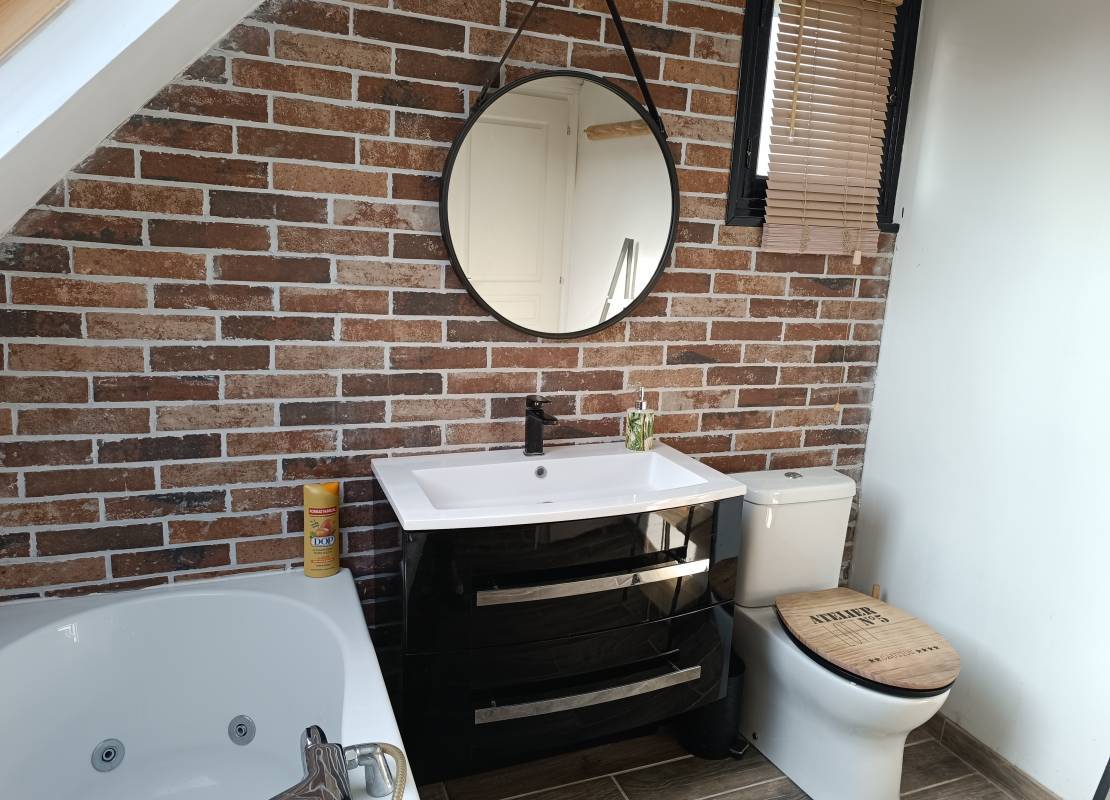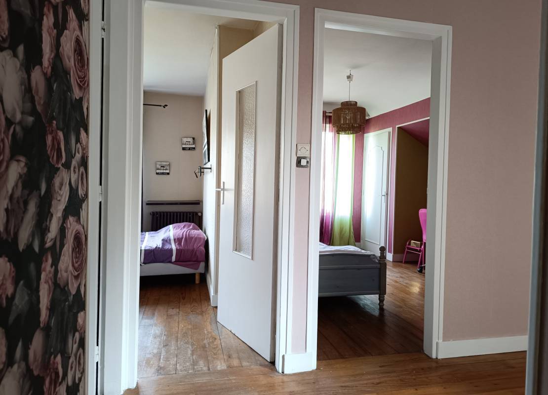 Au premier étage : trois chambres avec une belle salle de bain - wc, très récente, et au second une grande chambre mansardée.