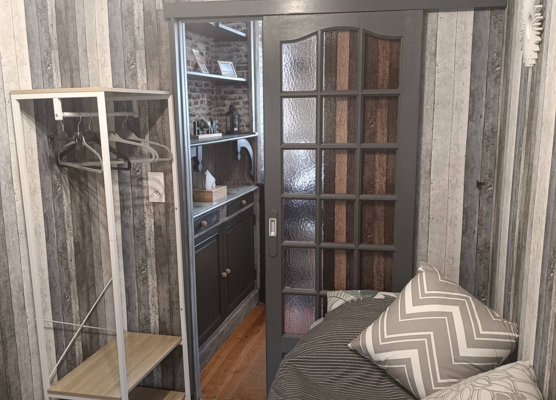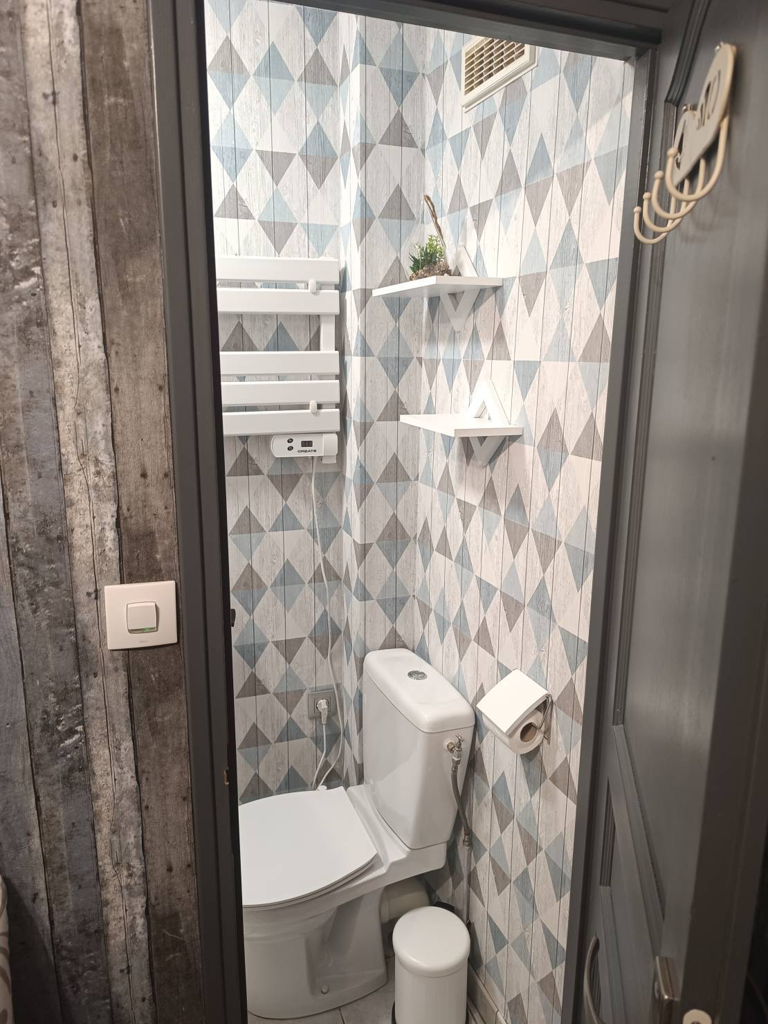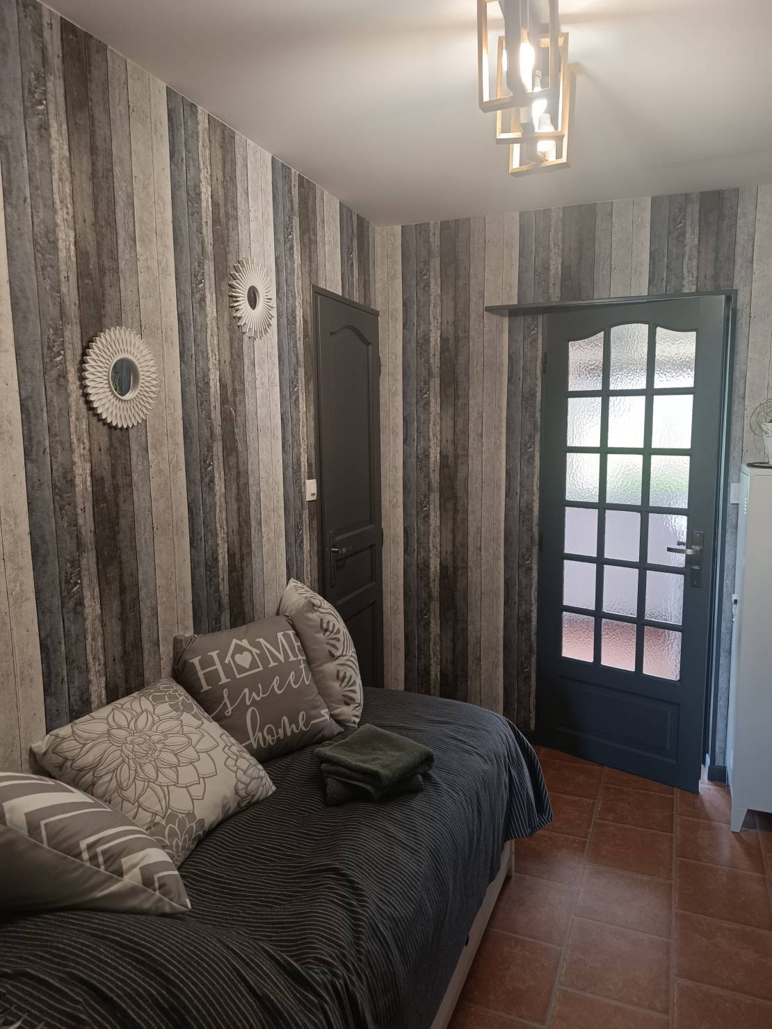 Ce grand studio, au 1er étage, se compose d'une pièce de vie avec couchage, d'un couloir d'environ 5,5 M2, pouvant servir de chambre passante, avec accès à une salle d'eau / wc et à une véranda qui est aménagée en cuisine, toute équipée. Celle ci donne sur un beau jardin et un cabanon est présent.