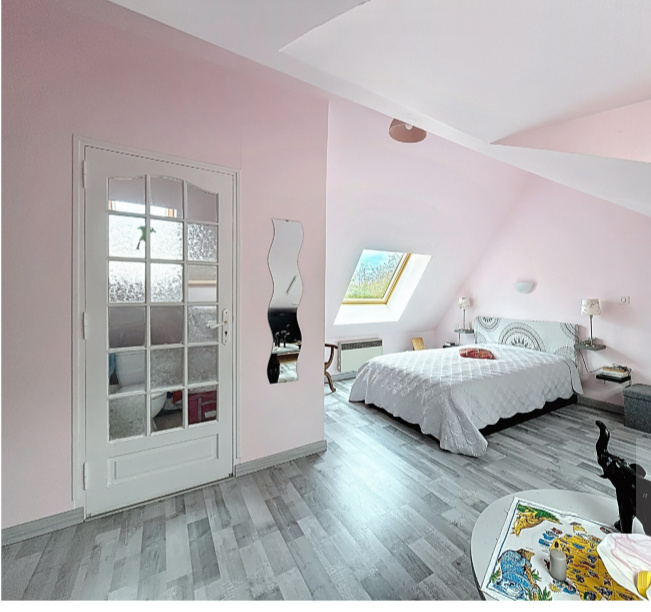 À l’étage, l’espace nuit se compose d’une suite parentale confortable avec WC et lavabo, d’une seconde grande chambre, ainsi que d’un vaste palier pouvant être aménagé en chambre supplémentaire ou en espace polyvalent selon les besoins.