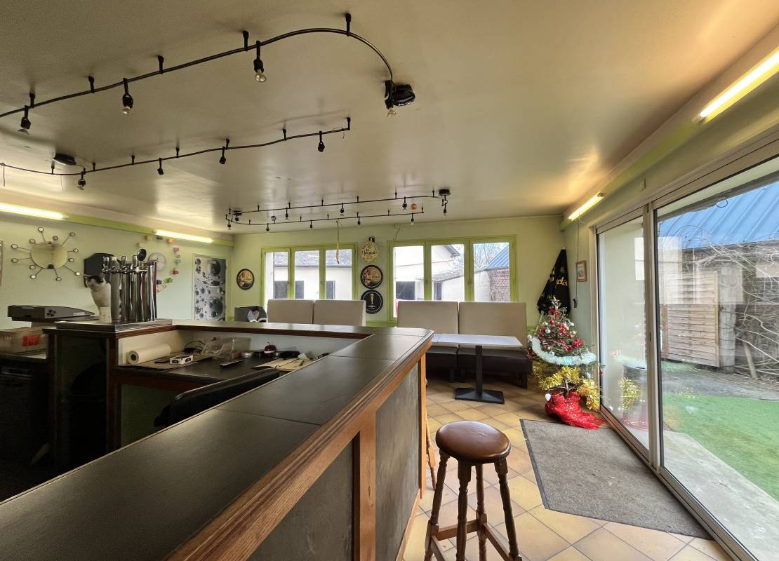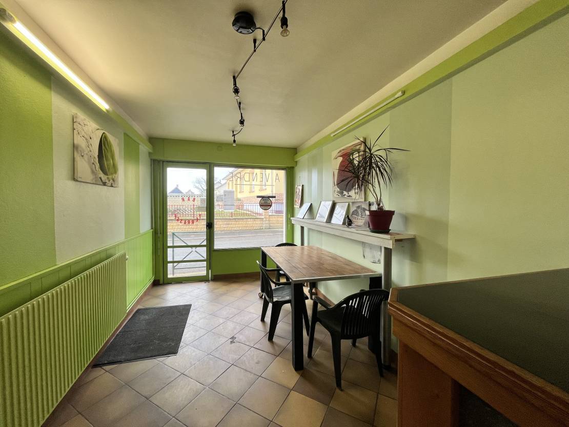 Au rez de chaussée : un petit local commercial, un sas, une réserve, une salle de bar-restaurant d'environ 50 m², un wc avec lave main séparé et un bureau.