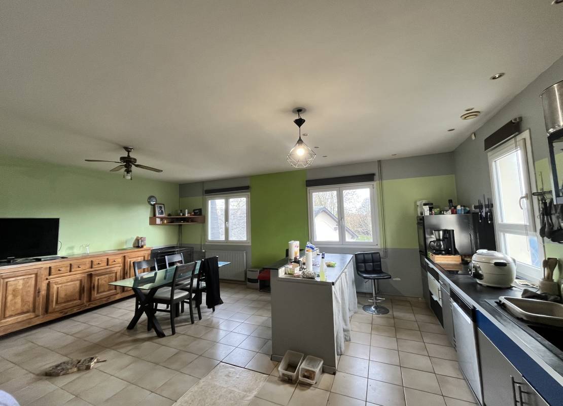 A l'étage : un logement composé d'un couloir qui dessert un grand séjour lumineux avec une cuisine ouverte équipée, quatre chambres, une salle de bain et un wc séparé.