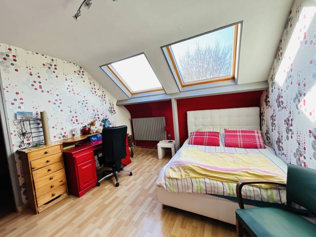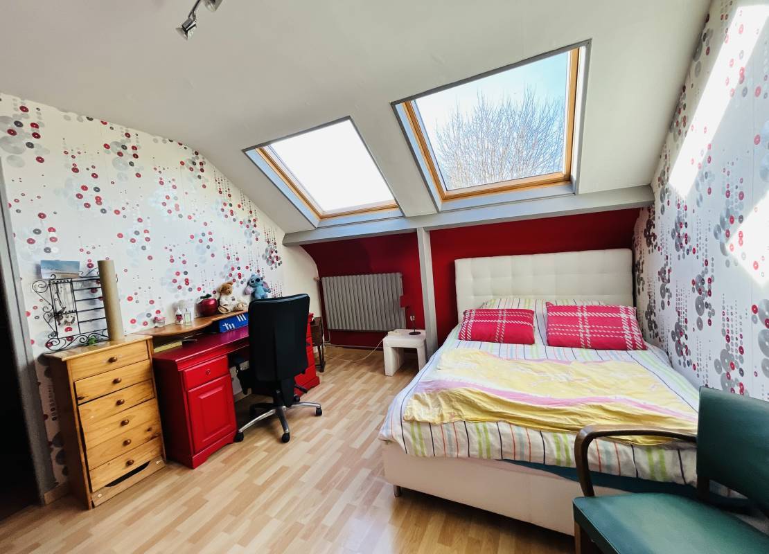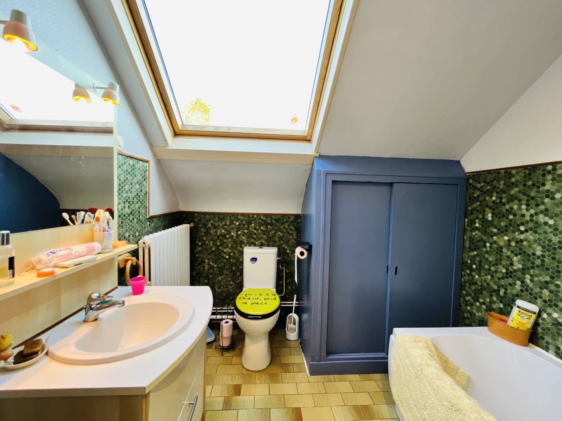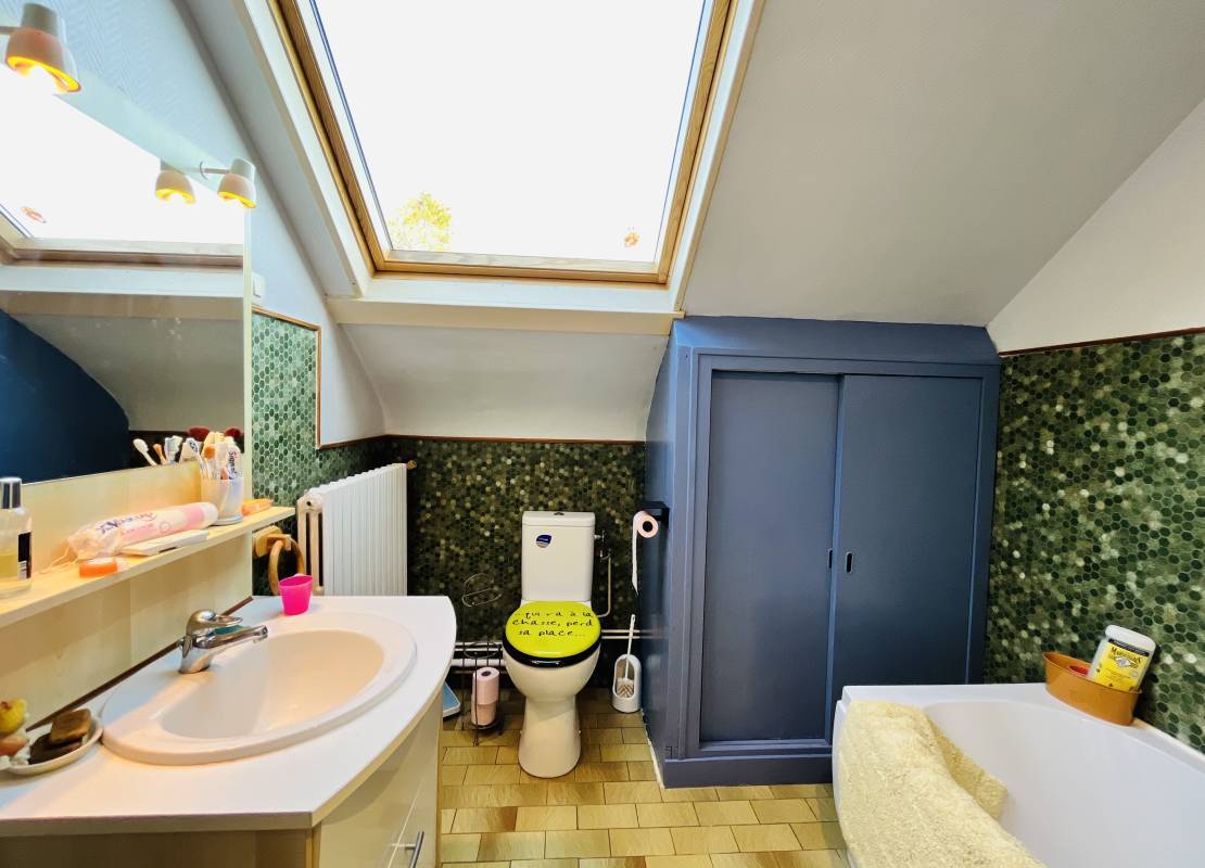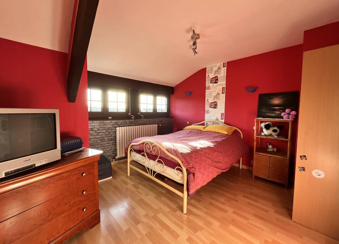 A l'étage : un palier qui dessert trois chambres, une salle de bain avec un wc, un bureau, une salle de jeu, et deux pièces de rangement.