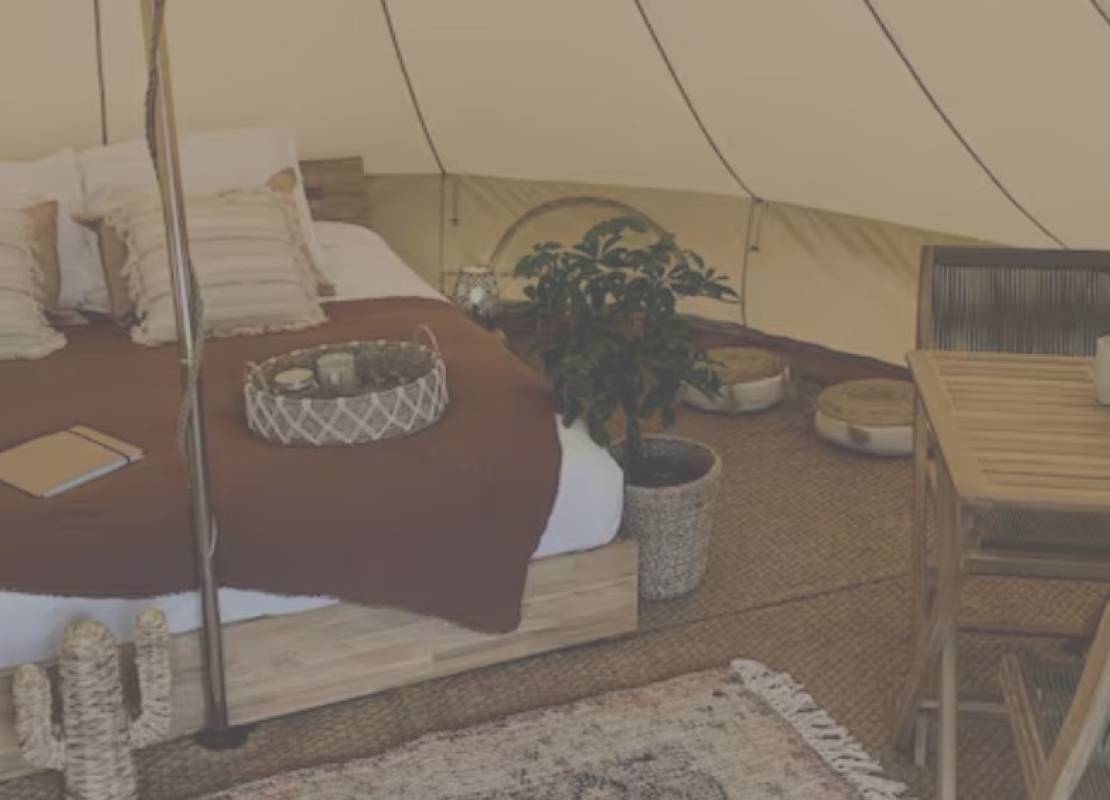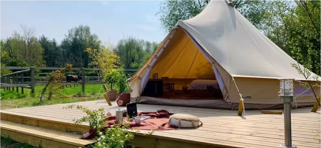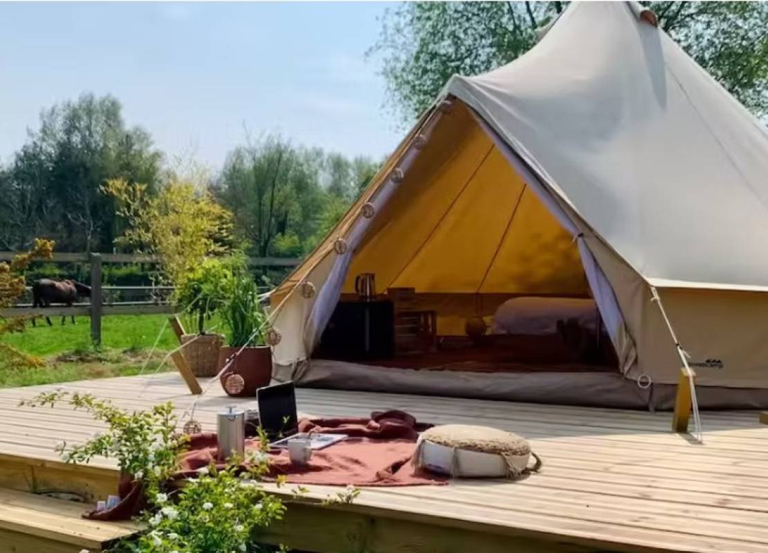 Sur le terrain, une tente de glamping exploitée en location touristique génère un revenu complémentaire.