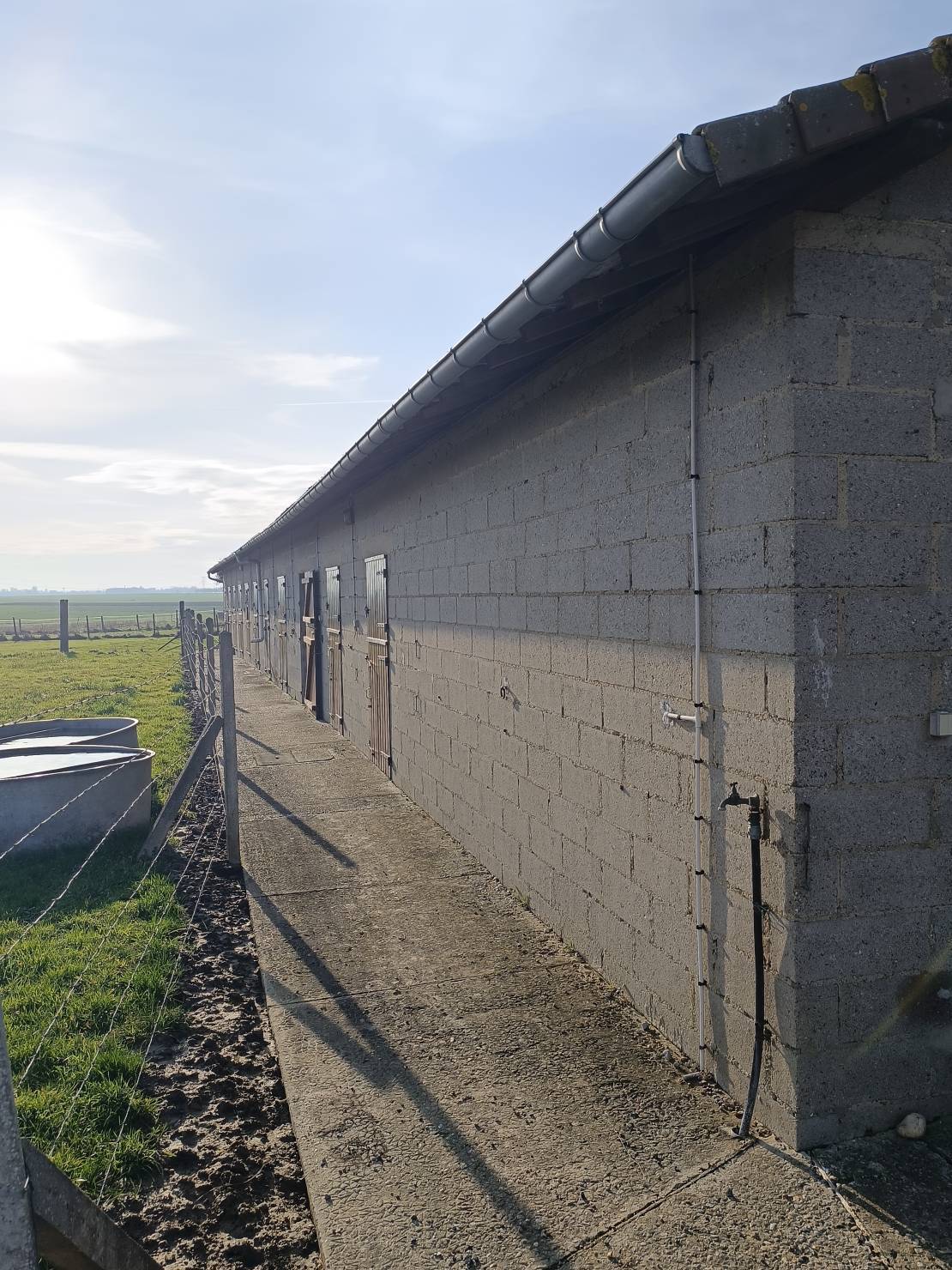 Concernant la partie habitation, celle-ci est dotée d'un séjour, salle à manger de 30 M2, donnant accès à une cuisine, un wc, une salle de bain et trois chambres de 10,50 M2.