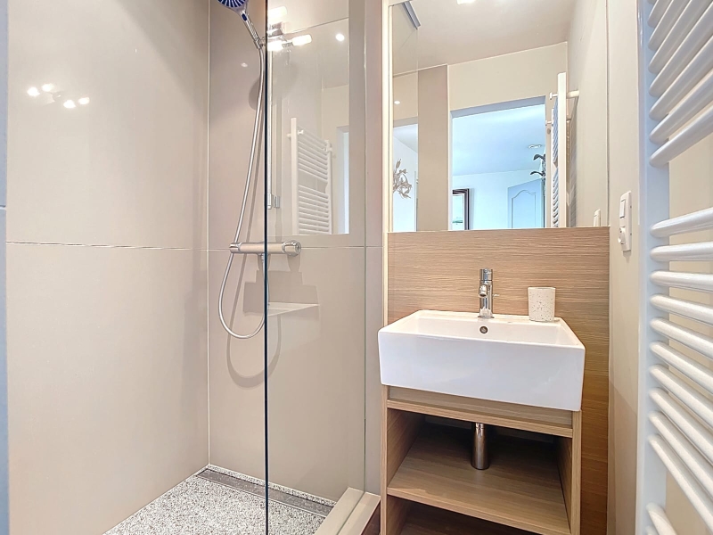 La maison principale séduit par ses volumes et son authenticité. Elle propose un beau séjour lumineux avec cheminée et poutres apparentes, une cuisine entièrement équipée, ainsi que cinq chambres, chacune disposant de sa salle d’eau privative avec douche et toilettes, garantissant confort et indépendance.