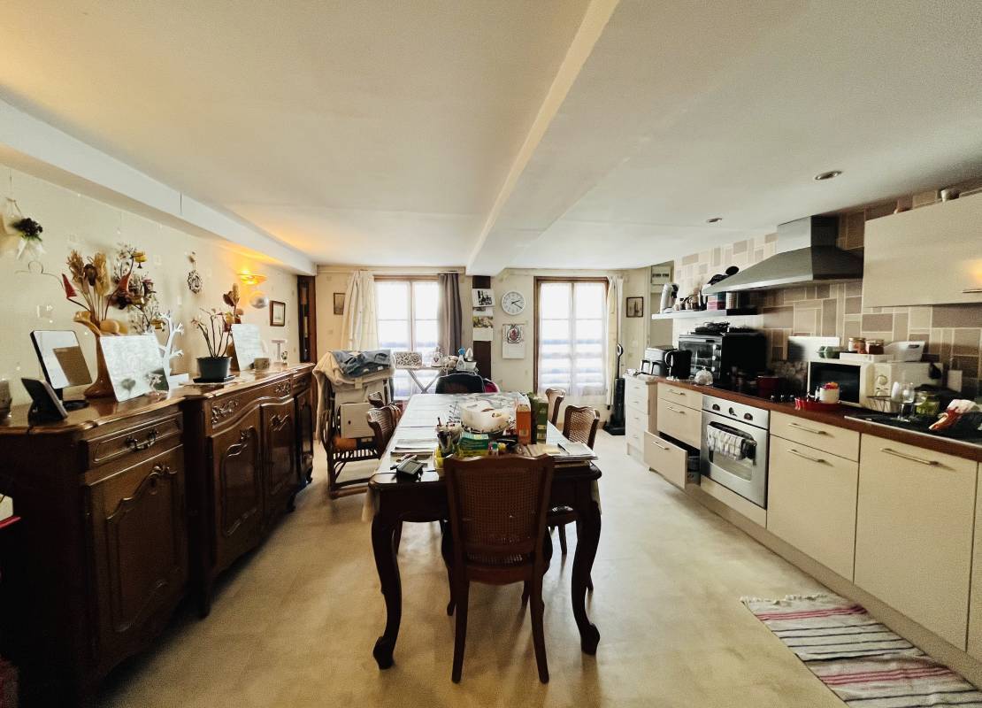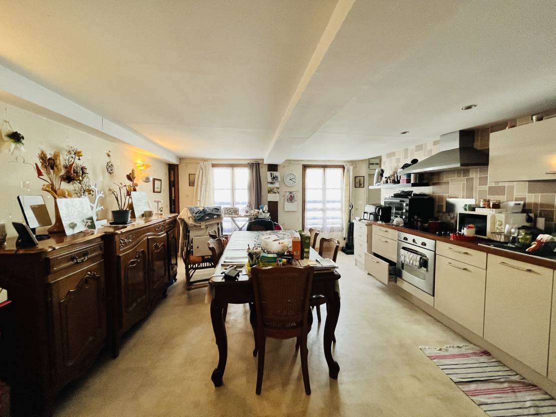 Au 1er étage : un appartement type T2 bis composé d'une entrée, un salon, une salle à manger avec cuisine ouverte, une chambre et une salle de bain. Et au même niveau, un studio.
