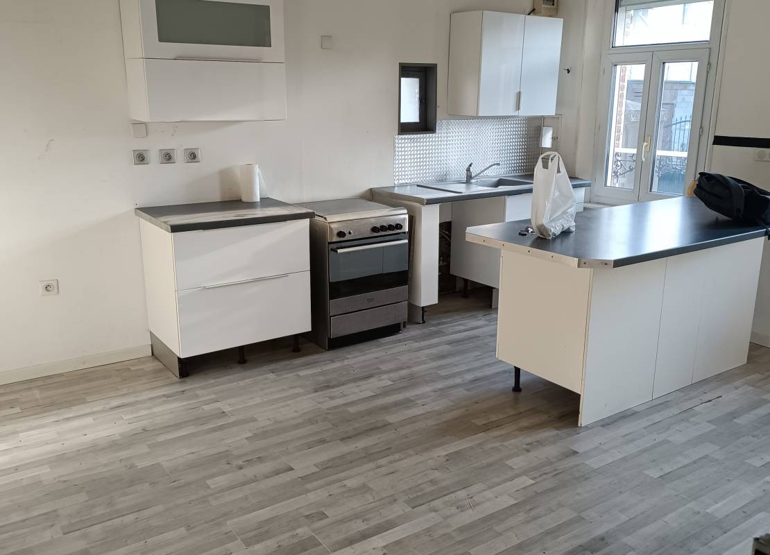 Au RDC, un hall d'entrée, une pièce de vie avec une cuisine aménagée, une salle d'eau, un wc et un salon de 19 m2 avec un insert bois chauffant une grande partie de la maison, (complément chauffage : électrique).