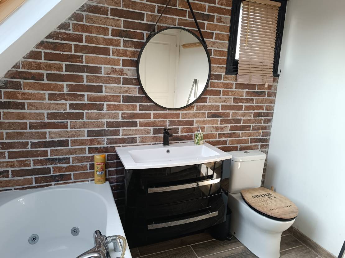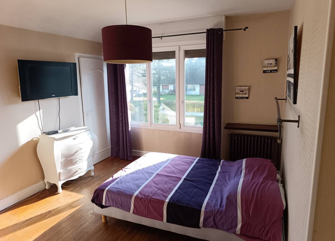 Au premier étage : trois chambres avec une belle salle de bain - wc, très récente, et au second une grande chambre mansardée.
