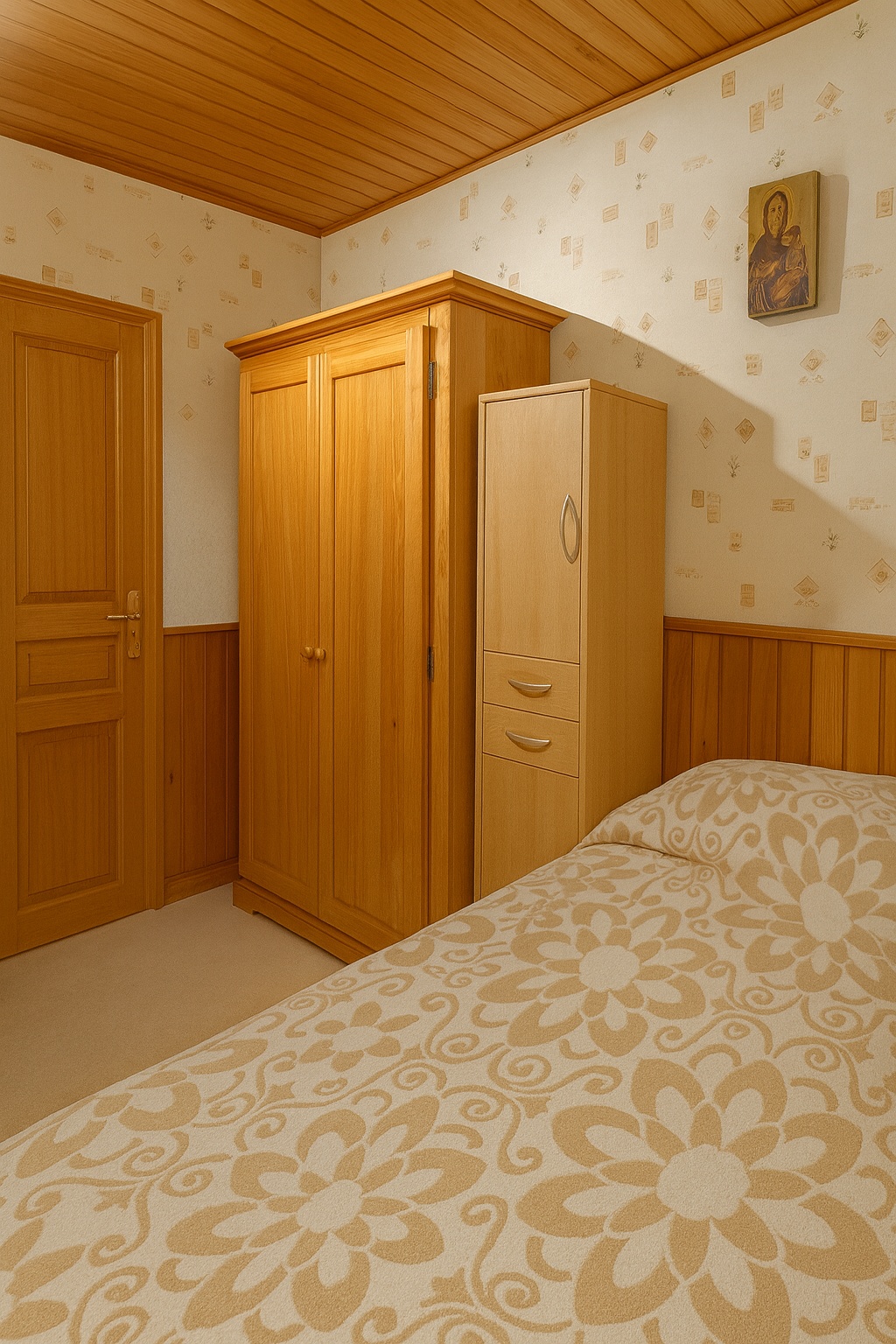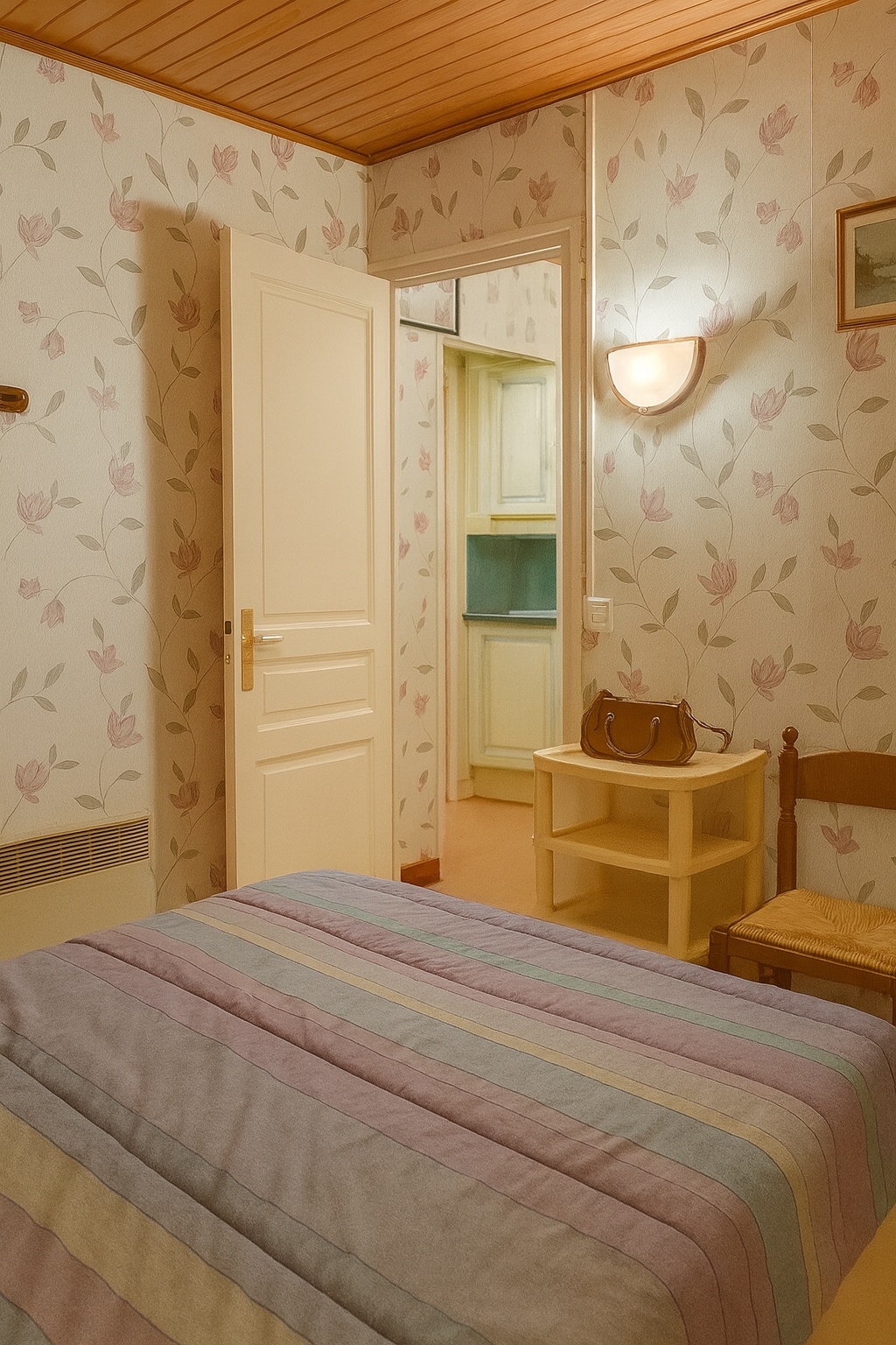 deux chambres, une salle de bain rénovée, WC séparés, un garage