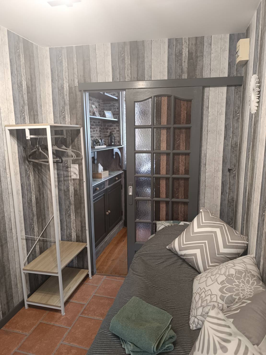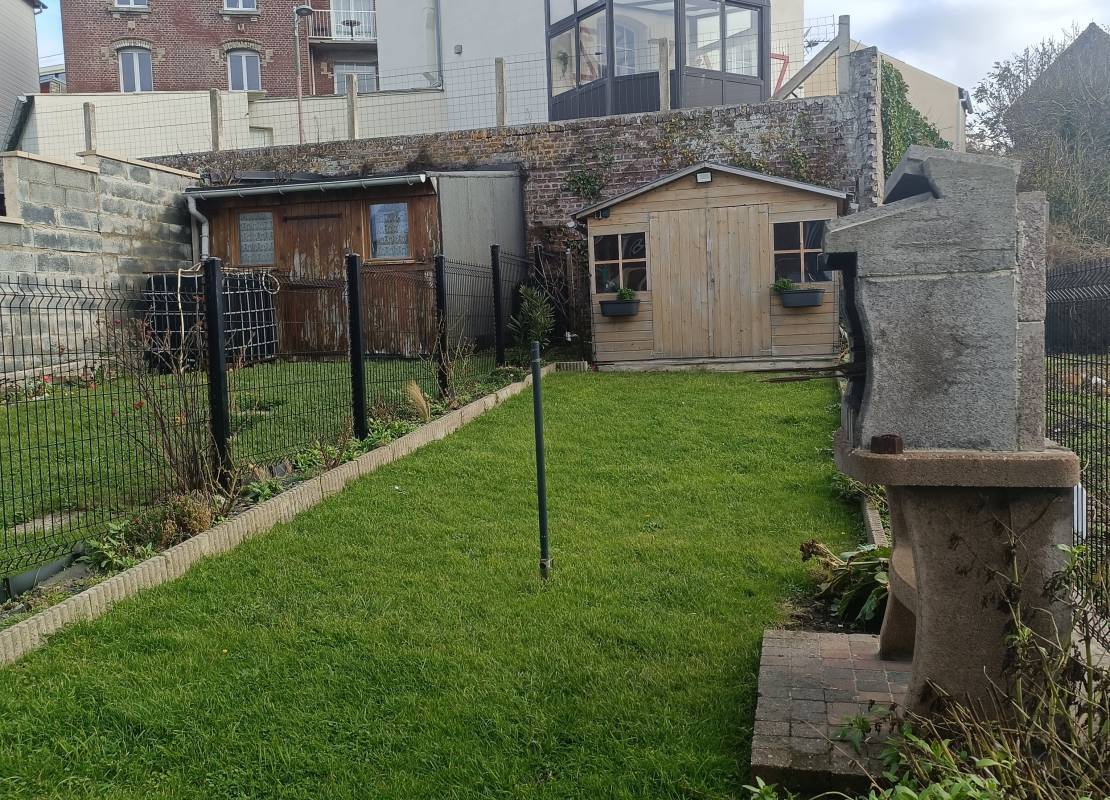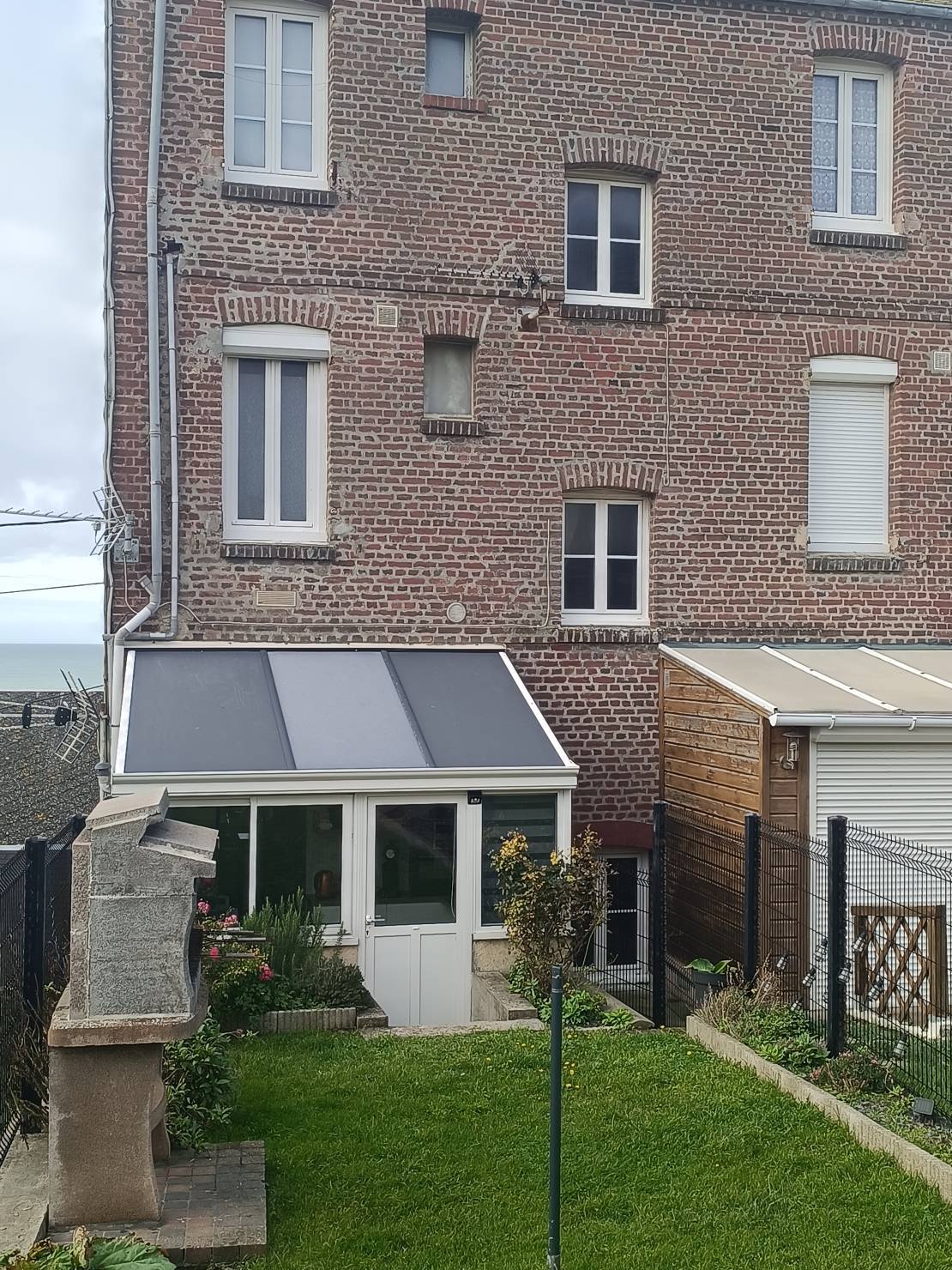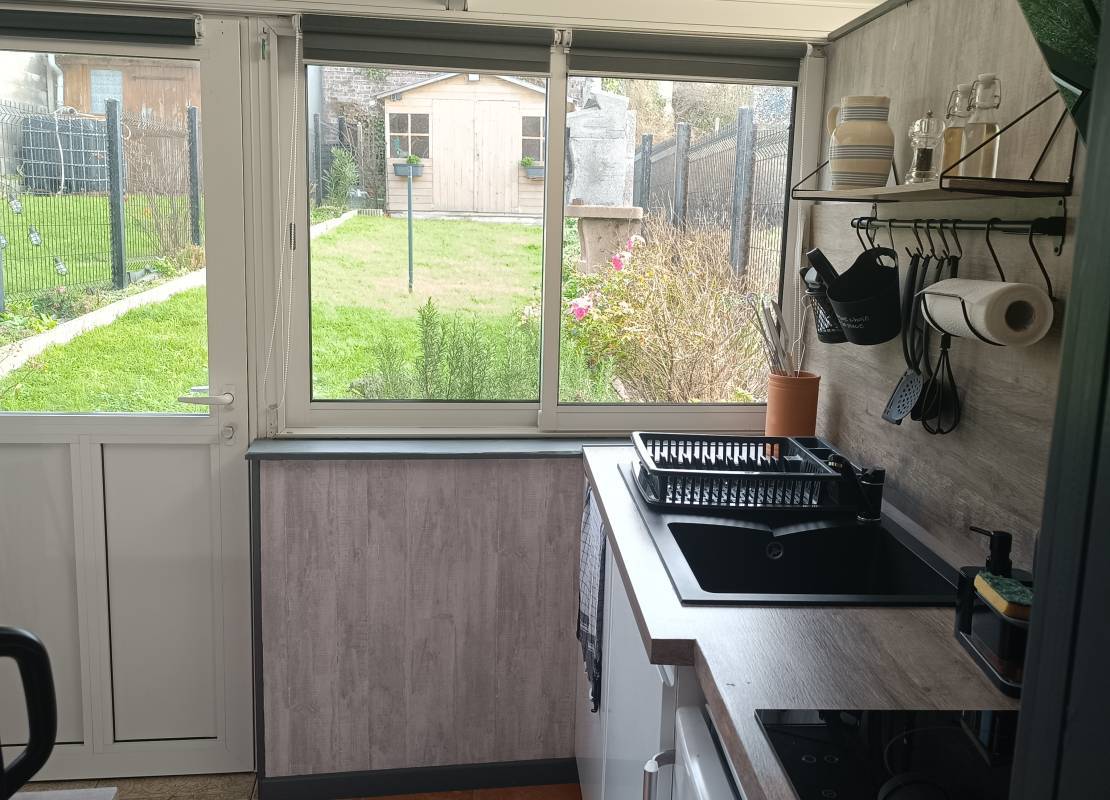 Ce grand studio, au 1er étage, se compose d'une pièce de vie avec couchage, d'un couloir d'environ 5,5 M2, pouvant servir de chambre passante, avec accès à une salle d'eau / wc et à une véranda qui est aménagée en cuisine, toute équipée. Celle ci donne sur un beau jardin et un cabanon est présent.