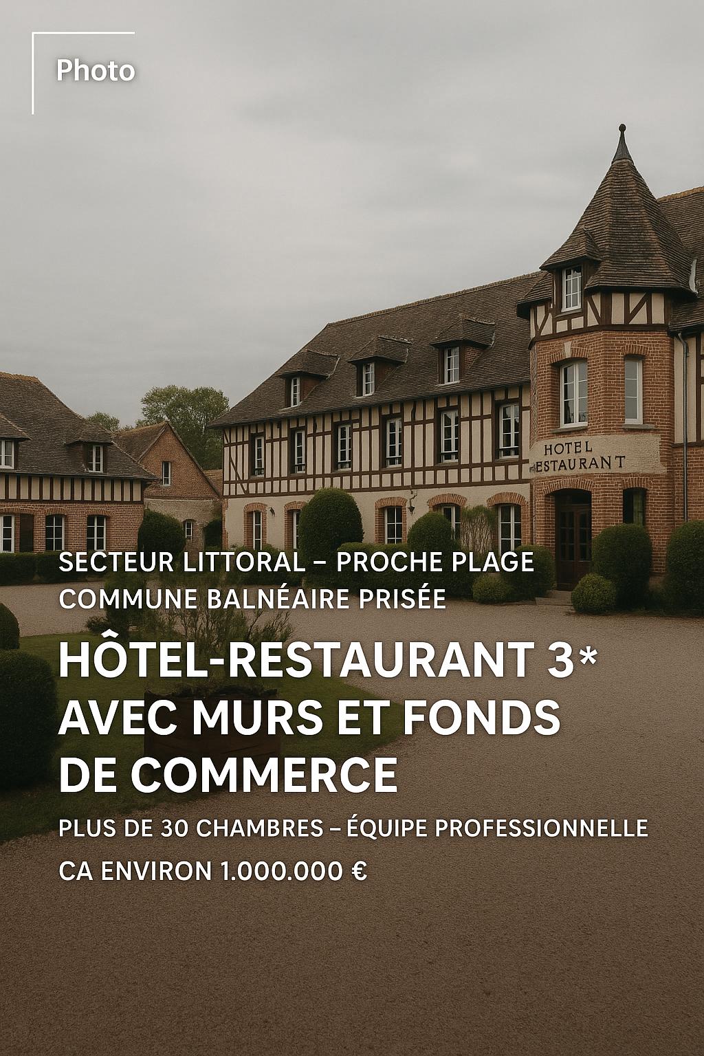Descriptif: Situé au cœur d’une station balnéaire recherchée du littoral, à seulement quelques minutes à pied de la plage, ce fonds de commerce d’hôtel-restaurant 3 étoiles est proposé à la vente. L’établissement bénéficie d’un emplacement privilégié et d’une structure d’exploitation appréciée par une clientèle variée.