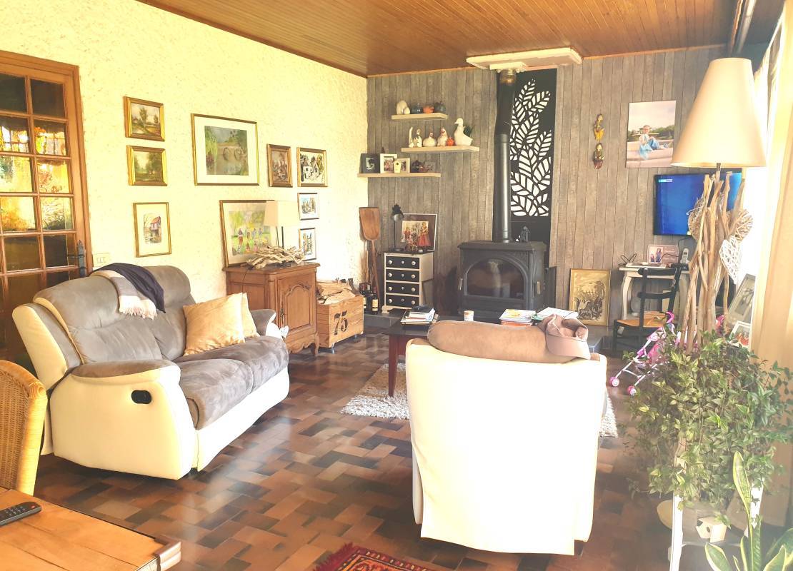 comprenant : Au rez-de-chaussée : hall d'entrée desservant une cuisine aménagée équipée, un séjour lumineux et spacieux ouvert sur un salon avec son poêle à bois, une suite parentale, un dressing, une salle de bain, un wc.