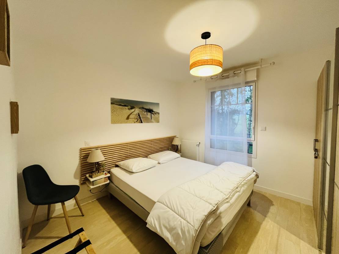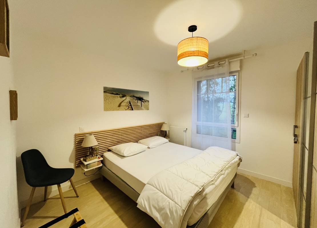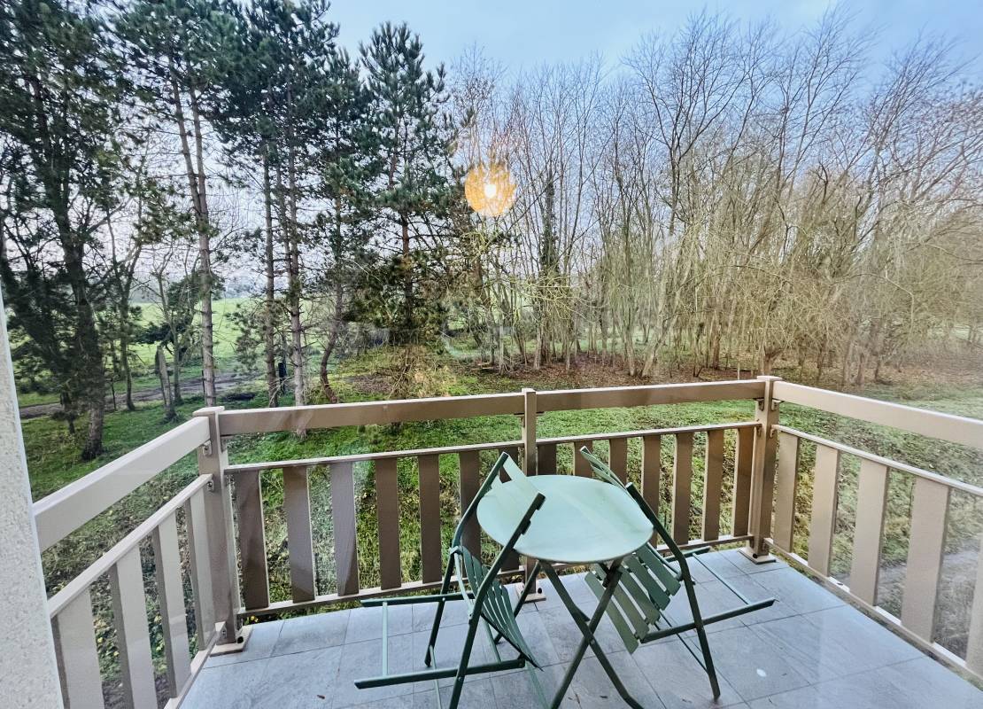 Comprenant : une entrée, un séjour très lumineux avec cuisine ouverte équipée et un balcon offrant une belle vue sur le bosquet, deux chambres, une salle de bain, et un wc.