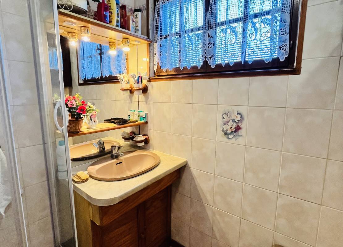 Au rez de chaussée : un beau séjour salon, une cuisine, deux chambres, une salle de bain, un wc et an ancien garage aménagé en arrière cuisine.