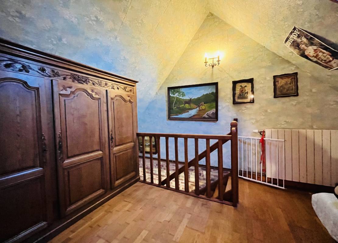 A l'étage : une pièce palière, deux chambres, et une petite pièce complémentaire pouvant faire office de bureau ou de dressing.