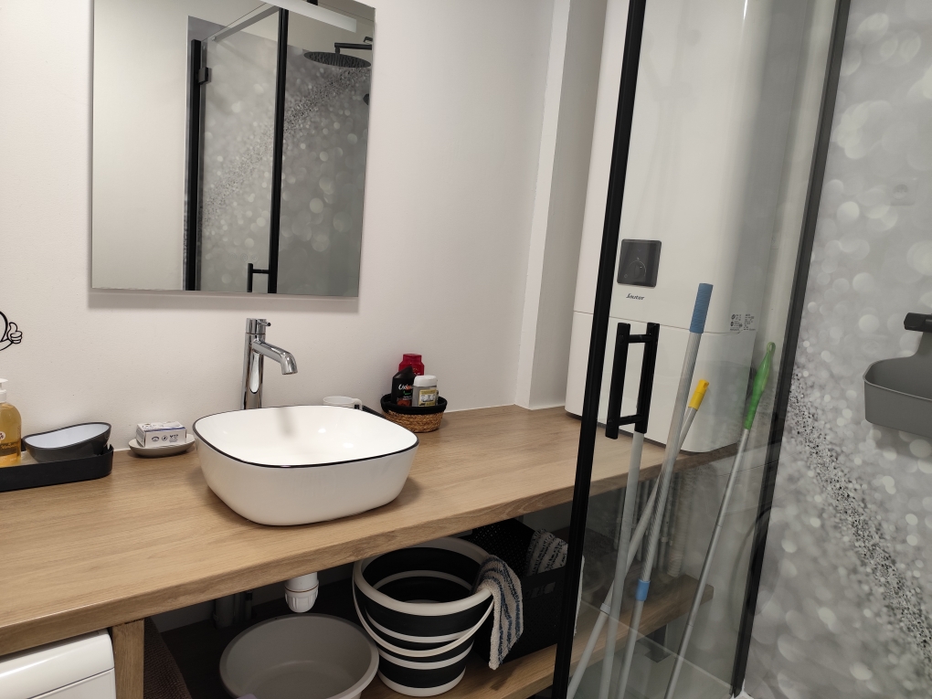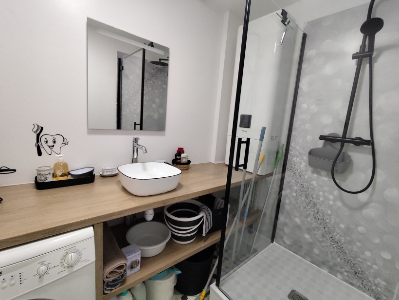 Il se compose d’un séjour, d’une cuisine, de deux chambres et d’une salle de bain.